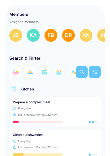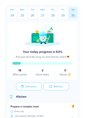 Add your household members to the app and share the workload with them. Compete for a spot on the family leaderboard!