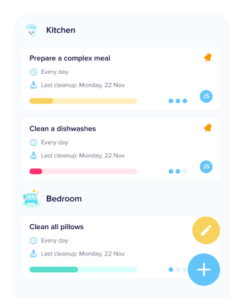 Our visual indicators will help you measure the cleanliness of your home and choose what you will clean next.