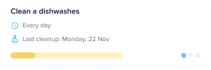 As a premium user, you will be able to generate an everyday cleaning checklist. Tell Sweepy how much you want to clean every day of the week, and depending on your effort configuration, we will generate a needed number of tasks.