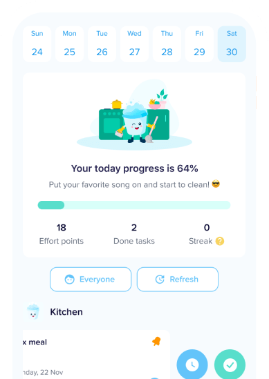 With Sweepy, you no longer have to clean all by yourself! Invite your family members or roommates to join in, and complete your cleaning tasks together. For the little ones, Sweepy also has an approval system. Their tasks will be marked as completed only after a parent's validation. Compete for the top position on the leaderboard and turn your cleaning routine into a game!